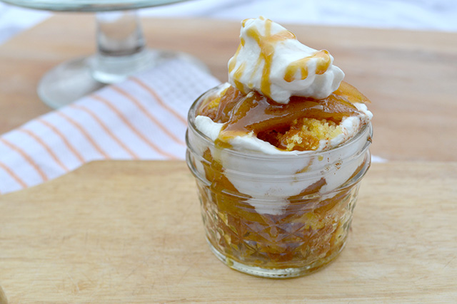 Okay, I’m gonna draw the line there. Use boxed cake mix and even use canned apple pie filling, but you HAVE to use homemade whipped cream. That frozen whipped topping just isn’t great for this trifle because of it’s texture.
