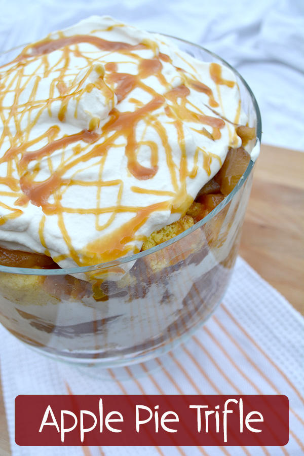 This Apple Pie Trifle is a wonderful combination of vanilla cake, soft cinnamon apples, and whipped cream. The caramel drizzle on top is the perfect finishing touch!