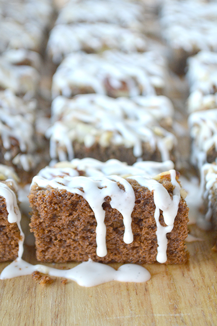 The bars are finished with a whiskey glaze. It’s simple with just a few ingredients, but it’s a must for the recipe.