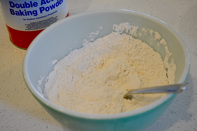 - In a medium size bowl, whisk together flour, baking powder, and baking soda. Set aside.