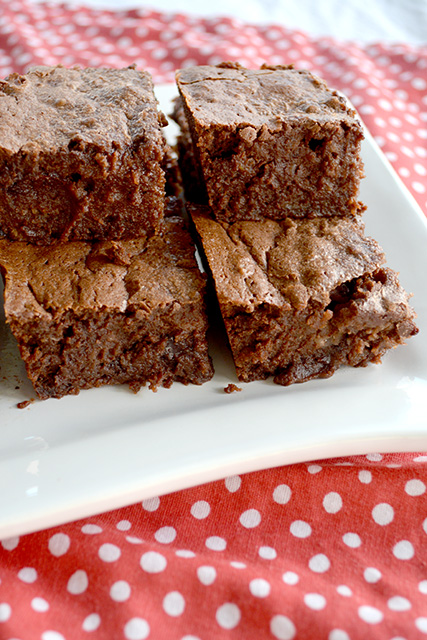 While the brownies incorporate yogurt in the batter, I can’t say they are very healthy as they don’t qualify as a low fat or low sugar treat. The yogurt does add great flavor and texture to the brownies without adding too many calories or fat. They happen to be under 250 calories a serving, which is great for a yummy brownie, but you still need to enjoy them in moderation.