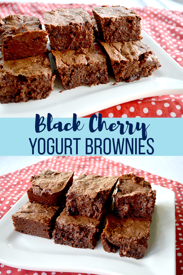 Black Cherry Yogurt Brownies are fudgy brownies that use black cherry Greek yogurt in the batter. The Greek yogurt gives it a nice subtle tang with a hint of cherry.