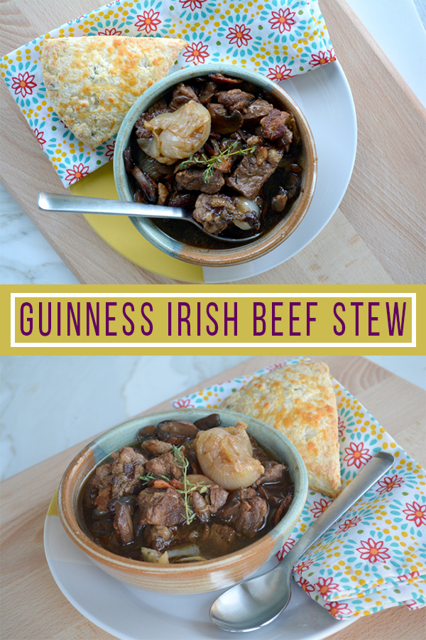 Guinness Irish Beef Stew is a hearty fulling stew that is filled with tender beef, onions, & mushrooms. Rich flavors made better with a strong Guinness.