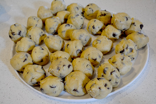 - Roll into 36 1" balls and place on greased baking sheet. (They don't spread too much, but you still want to give them some room. I typically fit 12 per baking sheet.)