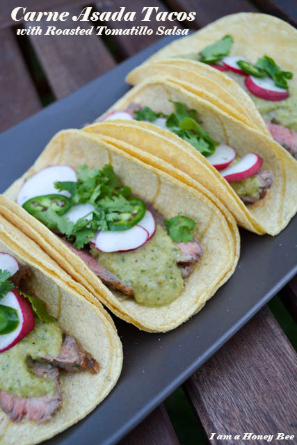 Carne Asada Tacos with a Roasted Tomatillo Salsa
