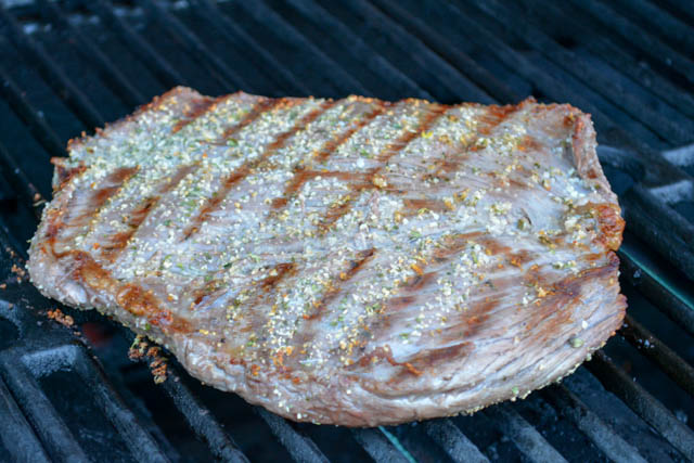 - Grill the steak for 4 to 6 minutes per side for medium-rare. Let rest for 10 minutes, then slice against the grain.