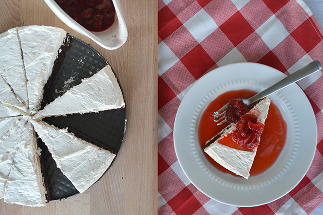- Serve the cheesecake with the cooled strawberry sauce.