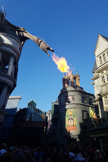 I loved getting to see the dragon perched on top of Gringotts spew fire! Did you know that the fire blasting out reaches temperatures of 3,560°F. WOW!
