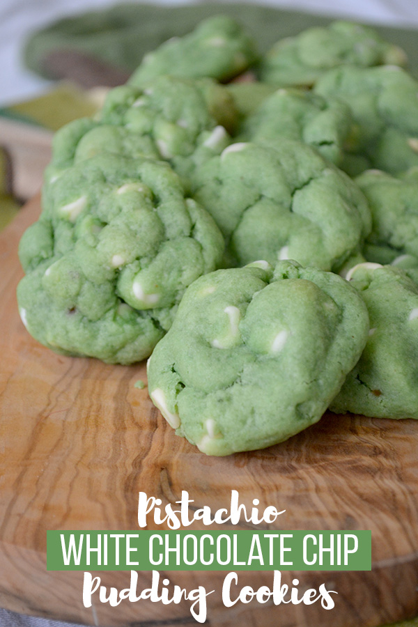 Pistachio White Chocolate Chip Pudding Cookies are made with pistachio pudding mix & white chocolate chips. Perfect for those who love pistachio ice cream!