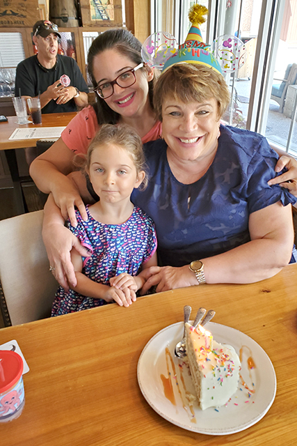Our amazing server, Danielle, brought over the cake with a candle for my mom to make a wish. (I certainly was wishing my shorts had some stretch at that point. LOL!)