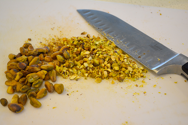 I used pistachios just because that is what I had on hand. But they are also really good with walnuts and pecans. No matter what nut you use, you just want to make sure that you very finely chop them. Chop them, consider that you are done, then chop some more. You really want a fine nut and bacon mixture because the balls are small. It wouldn’t be too pretty to have big chunks of nut and bacon on the cheese balls.