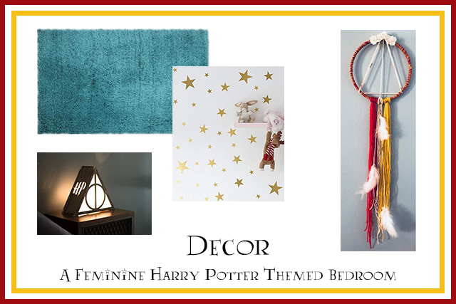 Find some inspiration on designing a fun feminine Harry Potter themed bedroom with these decor elements that will create a magical, whimsical room.