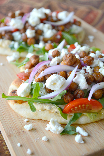 Middle Eastern Roasted Chickpea Pitas- your new favorite vegetarian meal to whip up in under 30 minutes. Quick & packed with flavors!